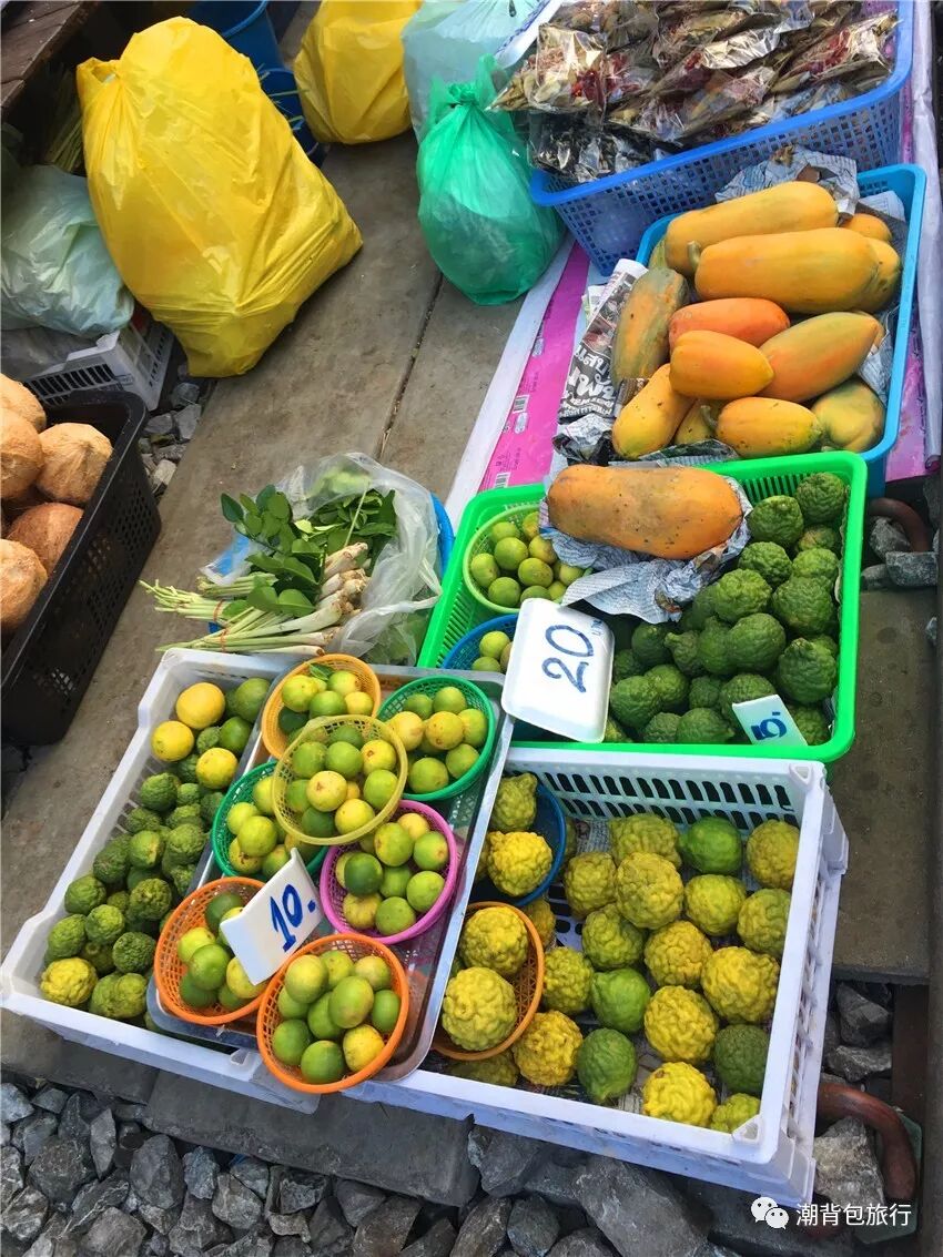 菜贩们在这里出售当地特产的水果,如荔枝、榴莲、芒果和新鲜的海产品、干辣椒等。顾客们则在各个摊位之间穿行,挑选自己每日下锅的菜品。