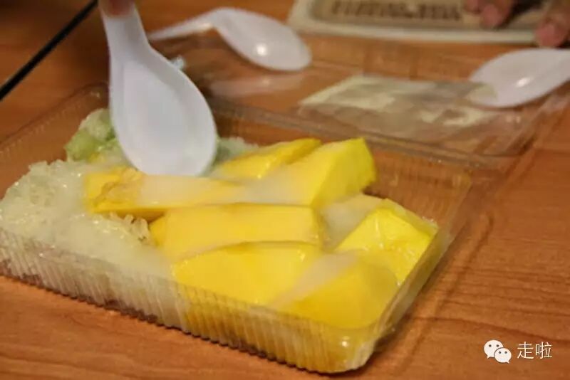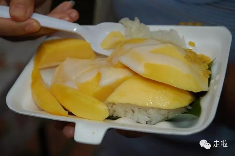 街边有很多卖芒果糯米的,选的时候看芒 果美不美,还有看那些饭是不是放太久了,多数建议叫小贩盛一盒新的给你比较好,担心那些装好的放太久,米粒太硬就不好吃了。