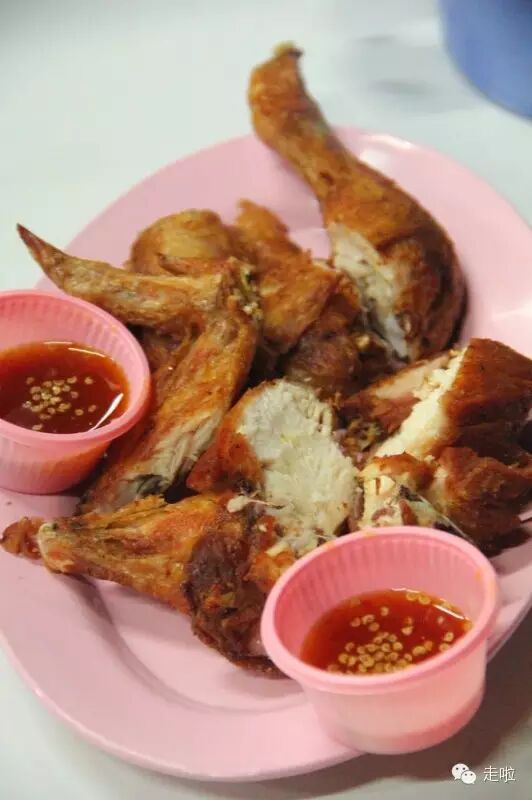 不懂大家有没有吃过泰国鸡饭!他们无论味道和辣椒都和我们的不一样!这个小档口好像是从下午开到晚上,有时很早收档的阿!他的饭很香,吃进口里充满蒜香牛 油味,配上嫩嫩的鸡皮,很好吃!饭粒淋上特配的黑酱油!AROI MA MA (很好吃的意思)由于这个档口开在店家前面,只是使用了一条小小的路,所以桌椅有限!通常我们都是打包回酒店吃的!!