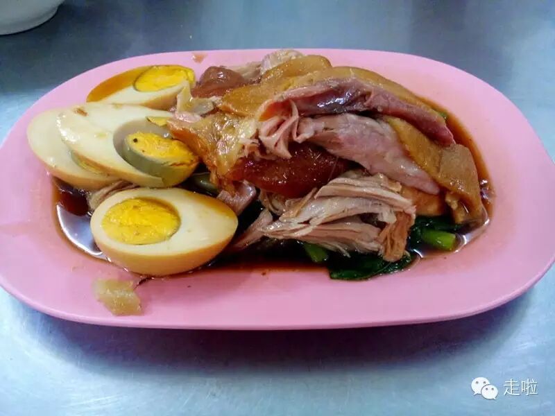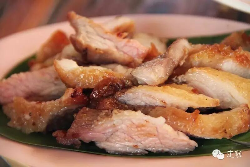 只隔了几间店,多汁肥浓的炖猪脚一看就让人食指大动。此外, 他们也有烧猪肉,他们把烧肉切成薄薄一片一片,吃起来上皮的脆脆的口感,中间不肥不腻的脂肪再加上下面的肉质,真的是人间绝 品,如果你来合艾没吃过清姐烧肉,真的,不要告诉别人你来过泰国合艾!