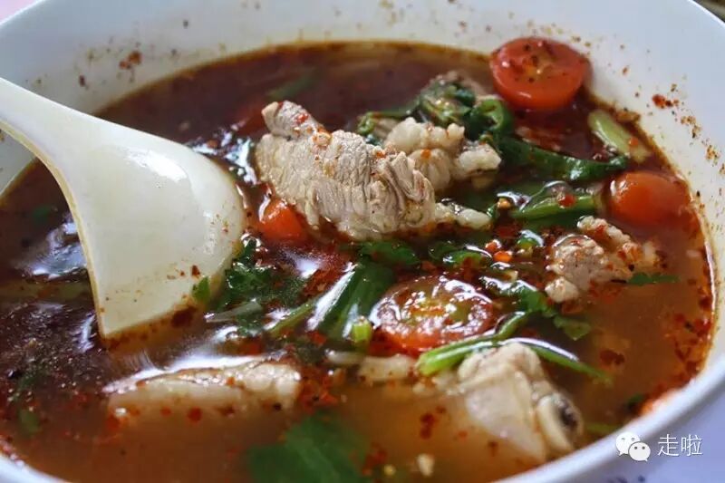 它的汤很好喝,如果根据自己喜欢的味道放点鱼露,辣椒粉和辣椒醋就更PERFECT!!不吃猪内脏的朋 友可以要求换炸烧肉!更好吃!脆脆的炸烧肉加上汤!正!