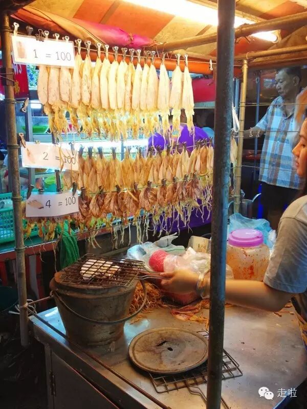 你会发现晚上的合艾有许多烤鱿鱼,但是有一档是非常非常出名的,因为他们烤的鱿鱼非常香,而且不会太硬或咬不动!拿来配酒真的是——绝了!!