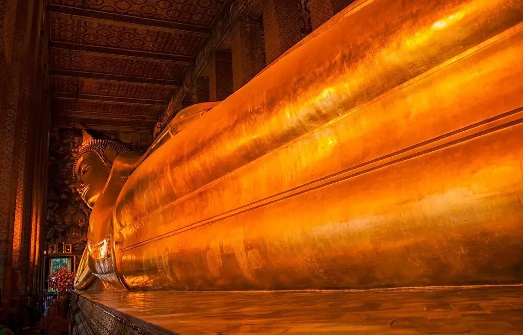 从大皇宫出来走几百米,就到曼谷最古老,也是全泰国最大的寺庙卧佛寺(门票100铢)。这里人少、安静,还能听到寺里面有人带着念经或是祈祷。不妨对着佛像许个愿望,万一实现了呢,但是一定要记得,如果愿望实现,一定要过来还愿哦。