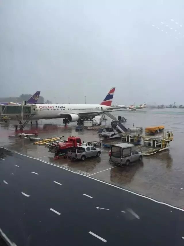 本来天气极好,下课了就匆匆回到宿舍收拾行李,看看表,还有两个小时就出发去曼谷接机了,匆匆忙忙把衣服收好,开开心心地拍拍舍友认真学习坐的笔直的腰,嘿,我要出去玩一个礼拜,有人找我的话就叫他直接line我。笑嘻嘻的坐上车,开往机场。孔敬大学离机场就十分钟的车程,心想着马上能见到老姐了心里高兴到了极点。在车上又把计划好的地方都看了一遍,确定攻略都没问题足以应对各种突发事件就笑嘻嘻地开始想象在四面佛拜完佛去吃什么,要在住的酒店,这一周的时间把游泳完全学会,回来好好和报复以前在泳池拖我喝了很多水的损友们。