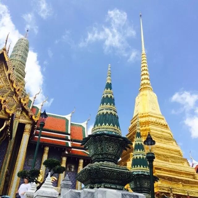 姐换了一条大布裙,可欢喜了,从大皇宫一路玩玩闹闹,拍照。出来的时候已经是下午3点左右了,我们在大皇宫门口拦了嘟嘟车,去siam。四面佛在central world商场出口的位置,香火很旺。大部分都是游人来拜,我们去的时候因为就是在曼谷爆炸案发生后的一周内,在四面佛增加了安检,有很多警察在守护四面佛。在门口的位置就可以买到香和花环,价格在60猪以下。据说很灵的,我们三个都许了愿,拜了佛,等到实现的时候再来还一次愿。siam是曼谷的中心位置,商业中心,大商场都在siam。big c一楼有leves,可以直接办理退税手续,拿着单子最后去机场的退税点拿钱哈;在big c可以买到几乎所有的泰国特产,淘宝爆款的榴莲干啊什么的都在这里,价格相当接地气基本没有宰客现象。Siam广场和Big C,Central world 距离都很近,在暹罗的中心。siam paragon主卖奢侈品牌,(siam卖的差不多都是高端品牌包括一些泰国本土的自创品牌,价格都略高),GUCCI,HERMES都有,价格和国内并没有相差太多。Central一般卖的是中低端品牌时不时碰上泰国的什么节日都会有很大的折扣;相比之下Big C最为亲民,big c一楼有levis,价格相比国内便宜很多,还可以在big c把要带回国送朋友的手办什么都采购了,很齐全的,曼谷的big c比其他地方的大很多而且价格是泰国最亲民的,普吉也有big c,但价格比一般的市场价还贵,当时姐姐不听劝告,怕一路难得拿东西,要去最后一站普吉把东西都买齐了,后来到了普吉的big c就惊呆了,因为价格比曼谷的贵太多。big c四楼有类似国内大食代的自选餐饮,价格相当便宜而且都是泰国本地人吃哦,我们三个人点了三个菜加三个点心,一共价格80人民币左右。曼谷的嘟嘟车有宰客现象。在大皇宫门口问嘟嘟车司机去siam要多少钱,他很惊奇我居然会说泰语,惊讶了那么几秒才狡黠的笑着说300铢。我就用泰语回他,300铢够从大皇宫去siam来回了,120怎么样,不肯的话就算了。于是回头拉着我姐准备换的士,果不其然,转头的瞬间,嘟嘟司机迅速的拉着我说,可以可以,120就120。