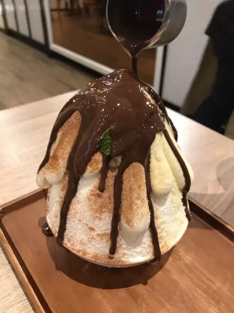 这家店在曼谷非常受欢迎,好吃到爆炸,沙冰系列强推!跟国内的沙冰、绵绵冰不一样,是炒鸡细腻的冰沙外面淋上一层美味焦糖,吃起来像雪花一样~