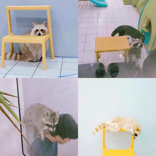 想接触浣熊可以在店家的陪同下洗手换鞋进去!也可以在玻璃屋外观赏,看他们可爱又傻乎乎的动作!