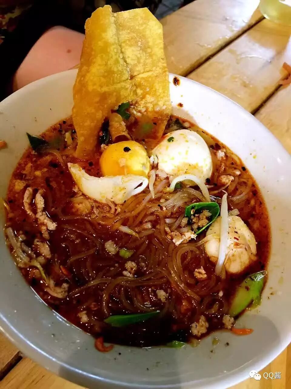 肉蛋裸粉(名字自己起的。。),隔壁桌几个常熟的点了说很好吃,我们也点来尝尝,果然不错,汤里内容丰富,又不是很大一碗,适合女子多点几样尝尝。这是辣版