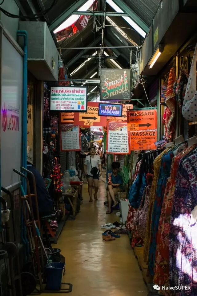 本想着一头扎进市场逛起来,无奈最近的是泰文旧书区,走了几步发现实在无缘,不得不承认当下逛街热情被浇灭一半。甩甩头径直穿过这片区域,直到站在了市场主干道上的那一刻,熟悉的消费主义机枪已自动架好,泰铢子弹已经上膛,准备扫射!