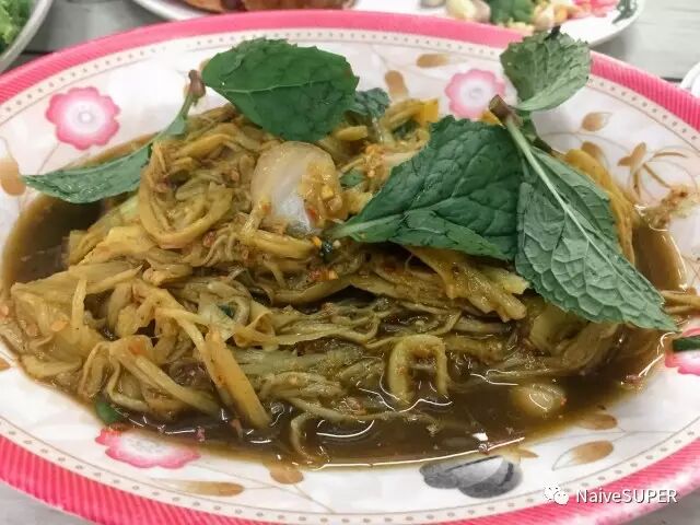 主干道上有一家等位要守着在吃的客人才能拿到号的泰式料理店,不要自我想象,切记跟着当地人点,直接指指和他们一样就好。我对自己的吃辣能力太过高估,作死点了一碟泰式竹笋沙拉(红字标出辣),辣到整个脸红得过敏一样差点没哭出来。冰棒也是很字面意思的冰棒,一个奶奶把各种颜色各种味道的冰水灌在铝管里,插进木签放在一个大冰桶里冻起来,你要哪个就报相应的颜色,奶奶把铝管捏吧捏吧,冰棒就拿出来了。
