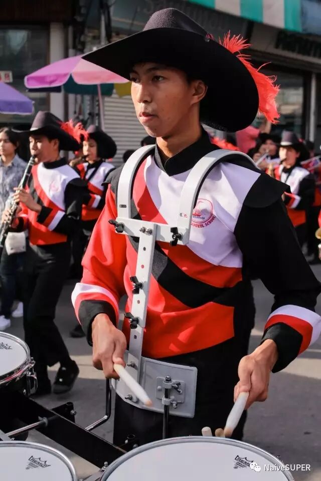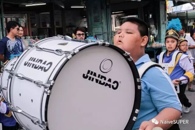 我们去的时候,很巧地碰上了一个盛装打扮的游行队伍。游客的队伍和游行的队伍相向而行。队列里不光有鼓手号手,还有小学生、老太太,每个人都会冲你热情地打招呼,甚至还有几个镜头感超好。队列里有个小胖子,因为下巴被绑着的大鼓顶得难受,一脸生无可恋。还有一个小女孩,大大的眼睛忽闪忽闪,灵气逼人。整条街上锣鼓喧天,热闹非凡。跟着人流,慢慢地就到了铁道市场。