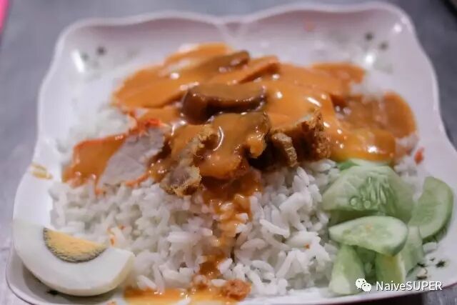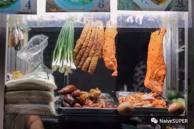 初来乍到,中国胃还在昏睡,暂时不想吃在国内也能吃得到的烧烤,我们就挑了一家很多泰国人的摊子坐下。小吃车看起来脏兮兮的,餐牌也油腻腻的,但此时冷光源却丝毫没有让食物的地道程度(看起来)削减半分。尝试了泰式米粉和泰式叉烧饭,比国内的甜很多,香料刚一入口,就知道,嗯,就是这个味儿。逛夜市不建议钻进人扎堆的摊铺,边走边吃,想吃什么就排什么,心情好就能发现,偶遇的往往觉得最好吃。
