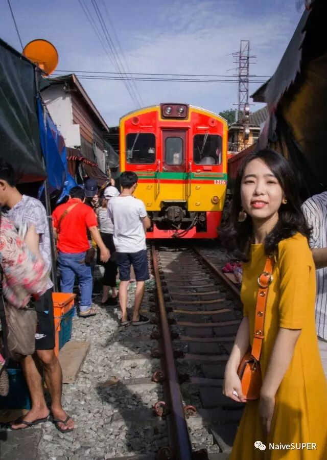 如果想要抓拍到和火车的合影,不要等火车来之前站在铁轨上,这太危险了!趁火车刚过,大家都还没反应过来时,站上铁轨赶紧拍,就可以抓到一张没什么人却有火车和摊贩的合影啦。