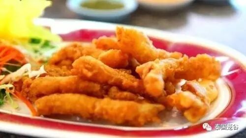 街边的青木瓜沙拉太地道了,在曼谷的餐厅里都不一定能有街边小吃摊的味道正点,因为做青木瓜沙拉的秘诀之处就是用那个木头棍子在碗里边捣边拌,加入新鲜的食材,五分钟出炉的才绝对能搞定你的味蕾。黄灿灿的是炸鱼丸,配上甜辣酱超好吃,推荐。