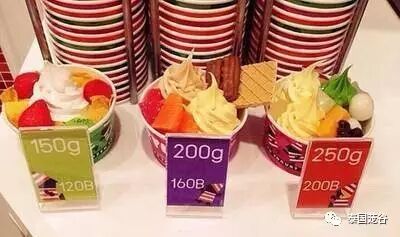 在Siam Paragon G层,这是泰国首家称斤卖的优格冰激凌店。100克卖80铢,由于店面小,每次只放10人进去,其余人在外等候,有8种不同口味供选择。