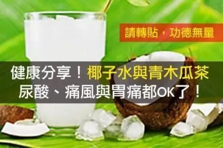 青木瓜泡茶加新鲜椰子有着神奇的功效,对于治疗中西医束手无策的痛风,却有令人无法想像的疗效,只要早晚饮用一颗新鲜椰子水,即使痛风情况严重到骨关节变形,依然可以康复。根据统计发现,国人尿酸过高的情形日趋严重,而尿酸过高的患者极有会发展成痛风。