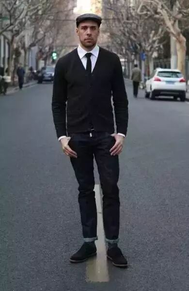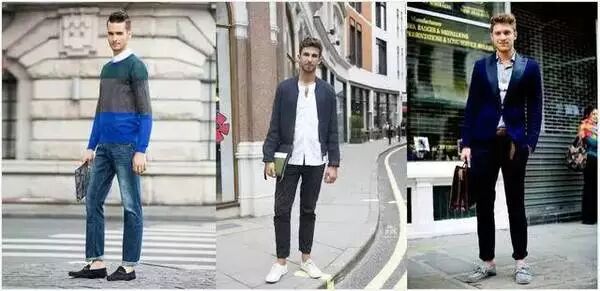 很多男生以为卷裤脚只是为了时尚帅气,其实并不尽然。卷裤脚不仅会让你整体造型变得时尚前卫,更重要的是,捐一点点会将你的腿长分开,让脚腕一点点的长度被拉伸,从而显得腿长!但是裤脚不宜卷得太高,也不宜卷得过宽。