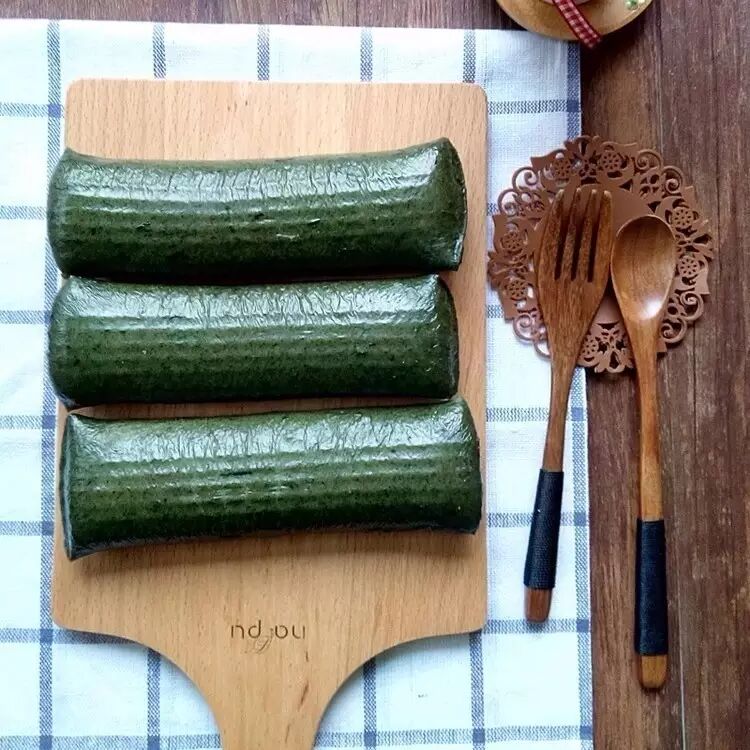 加入艾草制成的年糕带着货真价实的浓浓草木清苦味,但又不是难以接受的苦,反而特别适合甜味的做法。