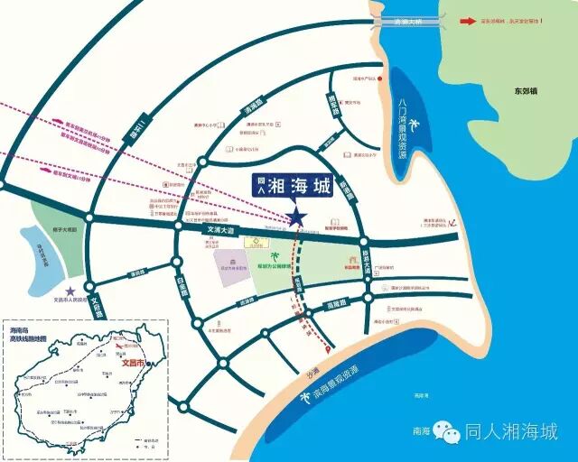 同人·湘海城位于文昌市清澜经济开发区,地理位置优越。至高隆湾、八门湾、集贸市场约1公里,至文昌高铁站约8公里,门口直达公交畅通各区域,是由中国500强企业,77座鲁班奖得主湖南建工集团倾力打造,总占地约300亩,总建筑面积达47万方的多业态一站式品质度假养老社区。