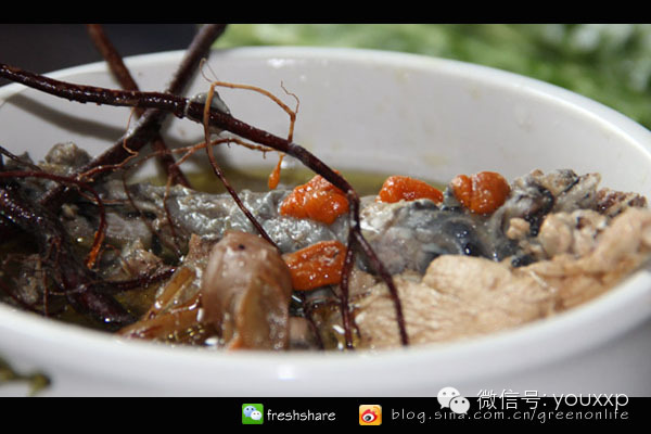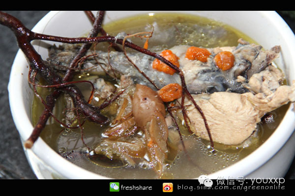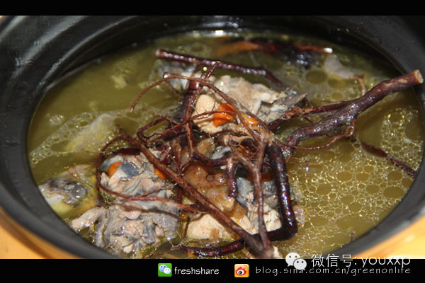 五指毛桃煲鸡其味道鲜美、气味芳香、营养丰富具有很好的保健作用。煲的过程中飘来阵阵椰子香,确实是一款很独特的汤品!