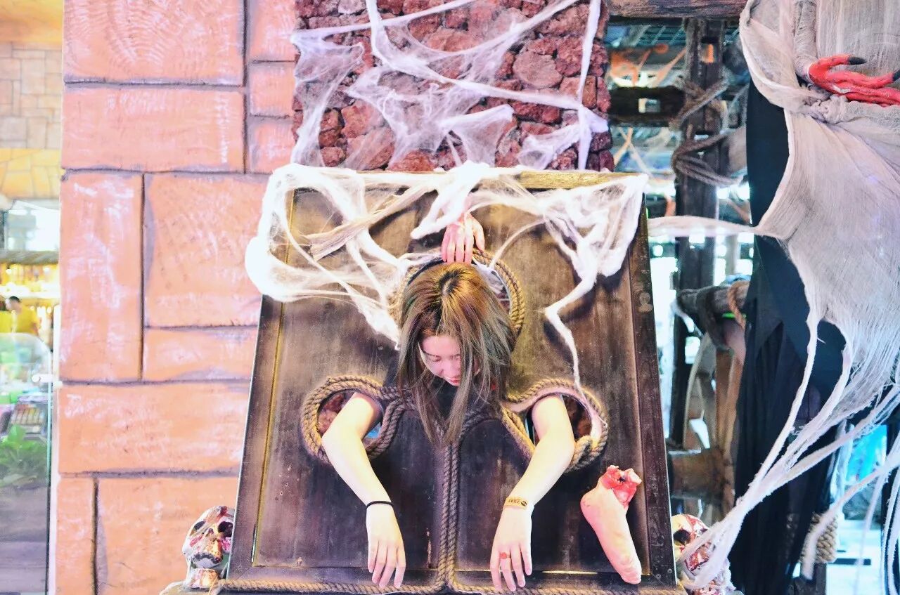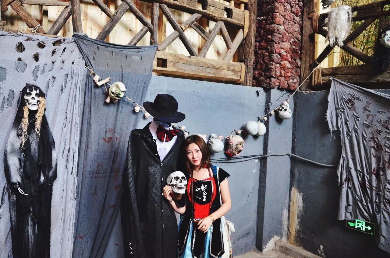 胖丁敲爱的是鬼屋,还遇到在景区里来回溜达的无头先生。当机立断叫住合了个影,是不是又萌又可怕?