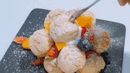 彩色的蛋皮,中间夹着一层层奶油和水果