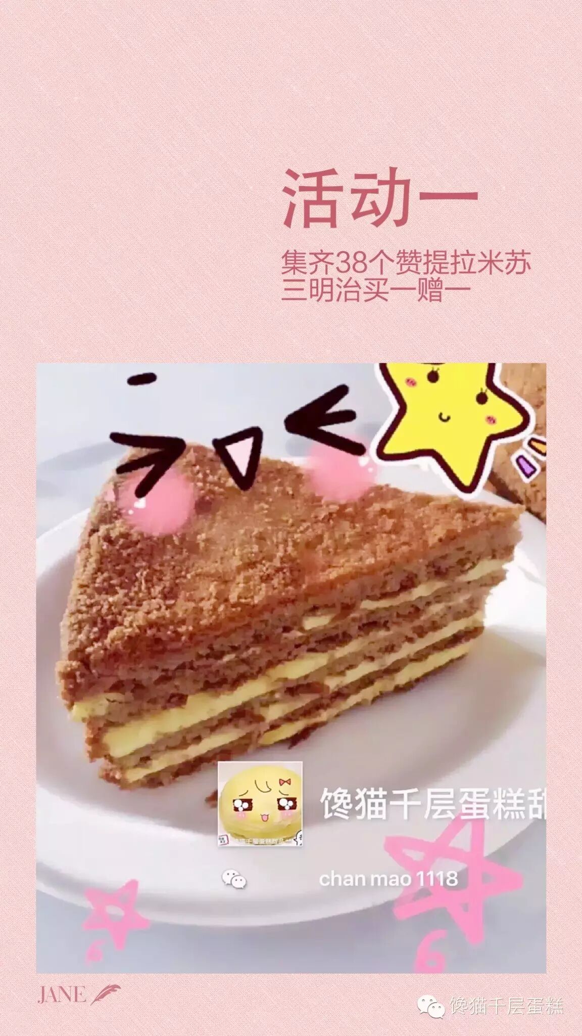 馋猫千层蛋糕买一赠一,集满赞即可享受此活动!