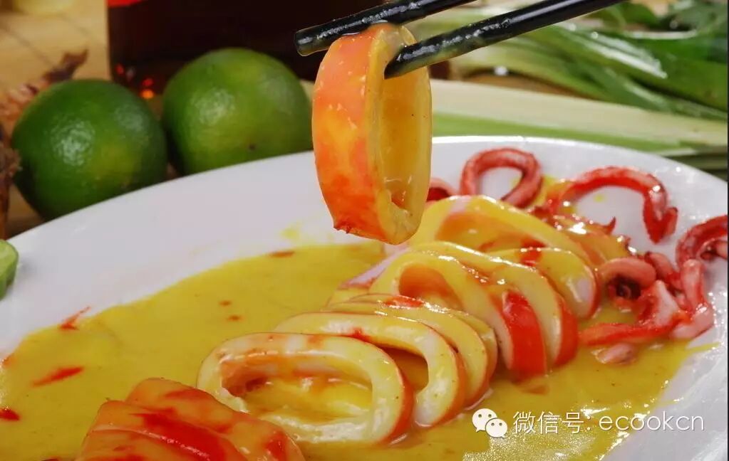 鱿鱼(3只)、蒜薹(300克)、大蒜(1瓣)、调和油(适量)、盐巴(适量)、料酒(适量)、蒸鱼鼓油(适量)、咖喱粉(适量)、鸡精(适量)