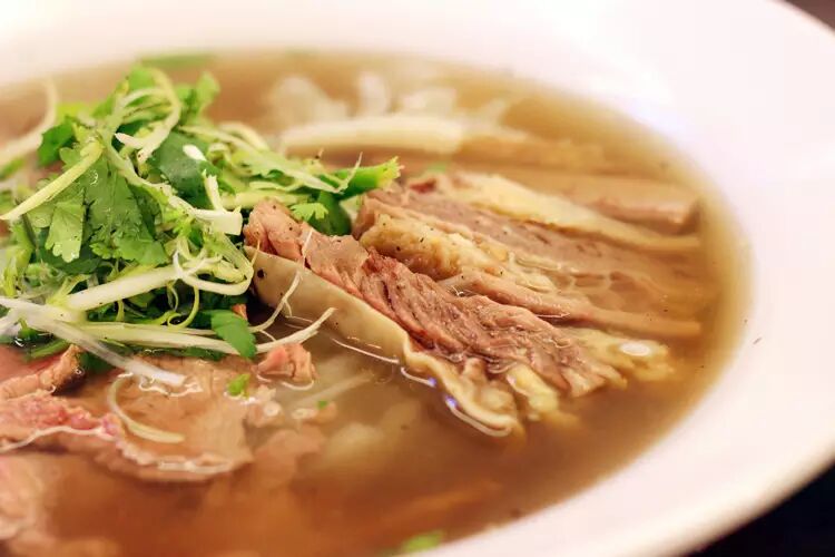 越南河粉是越南街头最平民的食物,但好吃的越南粉不是容易吃到的,汤底要用大量的肉和骨头来熬制,滚热的河粉上桌,清润的牛肉汤中有着生熟牛肉片、牛肉丸、牛肚、洋葱和少许香菜,根据自己的喜好添加罗勒或是豆芽等,再挤上一些柠檬汁,加上几滴鱼露,美味。