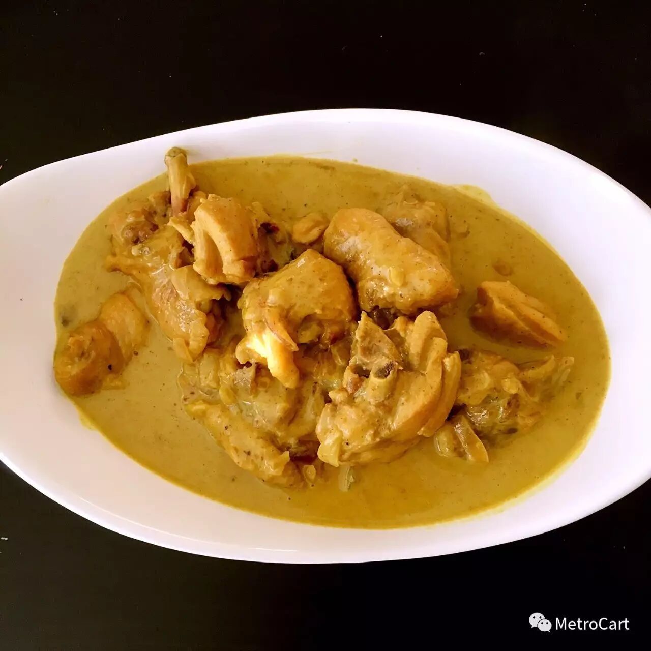 1. 买一只整鸡,将鸡腿和鸡翅用来烧咖喱鸡,其他部分用来炖鸡汤,一鸡两吃。新鲜整鸡和咖喱酱以及其他调味料都可以从美卡购物平台购得。