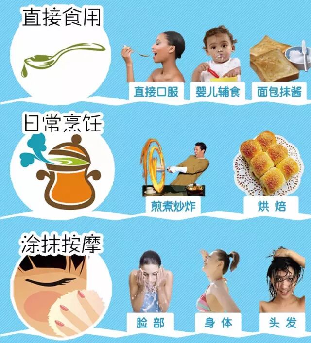 洗完头发适当涂抹椰子油在发尾并充分让它吸收,是天然的发膜;另外晒后皮肤发红发痒,擦上它也能起到镇静肌肤的作用。