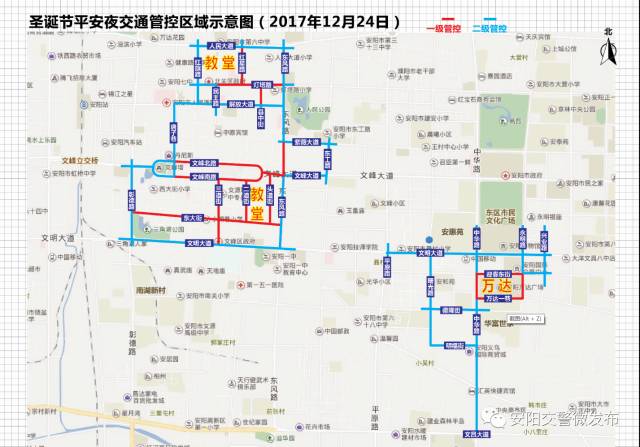 本周日(12月24日)和下周一(12月25日)是平安夜和圣诞节,每年一到这个时候,我市的文峰中路商圈、解放大道商圈以及东区万达商圈交通流量都会增大许多,为确保平安夜圣诞节交通安全,安阳交警将于12月24日对我市部分区域路段进行交通管制。现公布交通管控示意图,请广大市民提前规划出行路线。