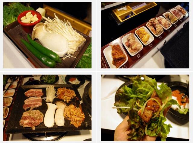 招牌的八色桌是30,000韩元(折合人民币170元,适合2~3人食用)还会赠送一锅海鲜汤,真正的好吃不贵。八种肉的确味道都很不一样!可以选择要什么样的套餐,有8种肉和4种肉,生菜泡菜和酱料是自助的,又实惠好吃!