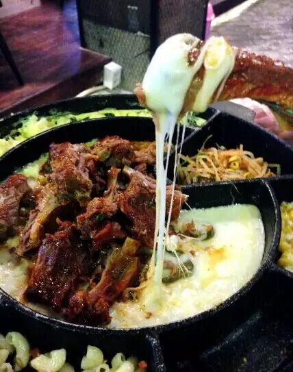 “芝士就是力量”星人去首尔必去且回味无穷的店之一,弘大的芝士排骨酱香味十足的排骨包裹浓浓香甜的芝士,排骨有3种辣度可以选,芝士也可以选择普通、多和很多。肉+芝士配一起的口感还不错,一口进去保证幸福感满满。