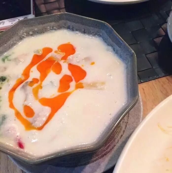 端上来的时候乍一看白色像碗洒了辣油的豆花,没想到却是正儿八经的一道鸡汤。口味很像冬阴功汤,酸酸的,椰子味很浓郁~鸡肉也很嫩滑!