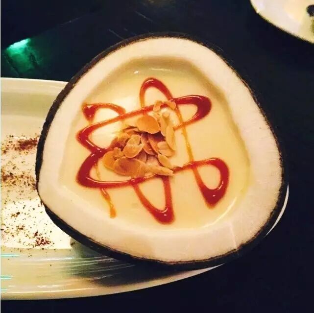 晚市才有的椰子布丁,是很多不爱甜食的人也能接受的一道甜品~布丁浓郁绵密,椰香丰富,加上果仁片,更加增加了风味。而且用椰子壳做为容器也很有心思!