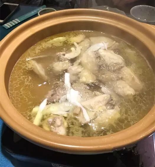 原味椰子鸡汤底,据说是佛跳墙的汤底所以很浓郁!把鸡先倒入,烧开后先喝汤。鸡汤煮开了,鸡肉也熟了,先喝汤,吃鸡,等不想喝汤了再涮菜,可确保原汁原味~