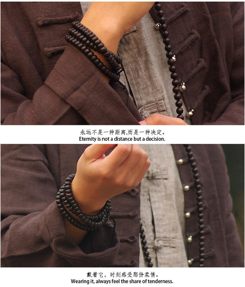佩戴与把玩:一般来说男士配戴厚的、粗的,彰显阳刚与神秘。女士佩戴细的、长的,或圆的表现苗条与尊贵。把玩,一般用人的皮肤抚润,日久颜色深沉透亮,盘玩也是任何物件交流的一种形式,无生命的小小椰珠被注入灵气,参与法事,不虚菩提子之称。要注意洗澡泡水时要将其摘下 。