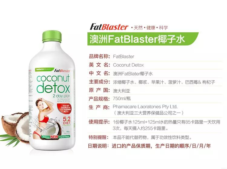 58时尚精品——澳洲进口 FatBlaster椰子水 极塑排毒