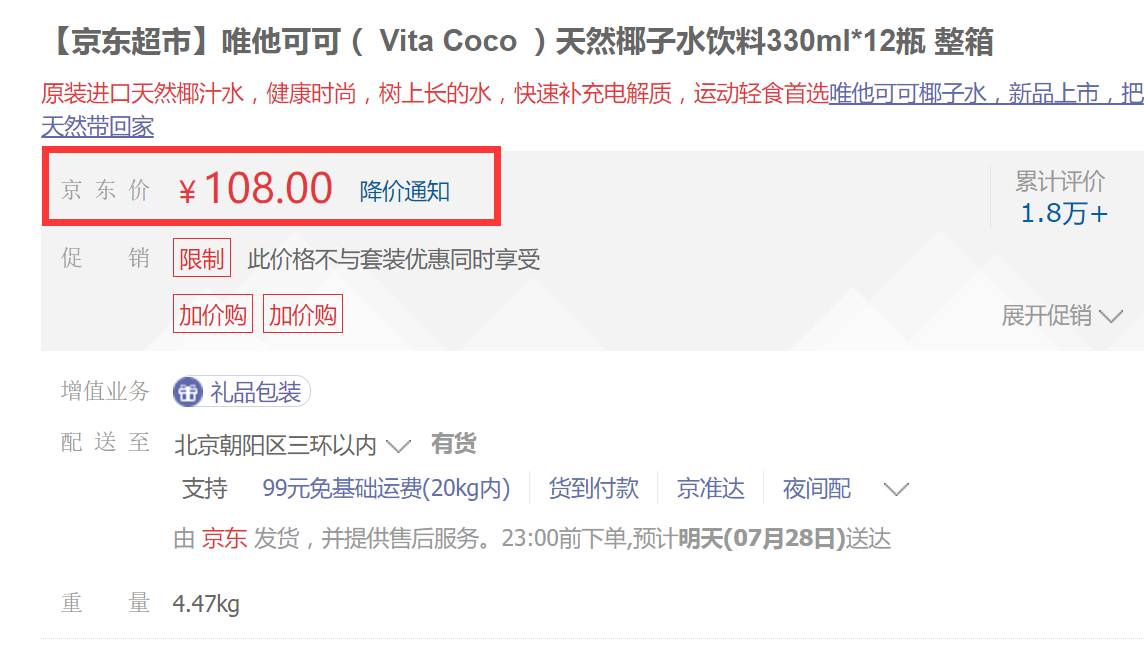 这次包妈给妞们带来的椰子水是一箱12瓶,在某东上价格是108,但在包妈这只要102,夏天来一箱放在冰箱,随时随地为全家解渴。