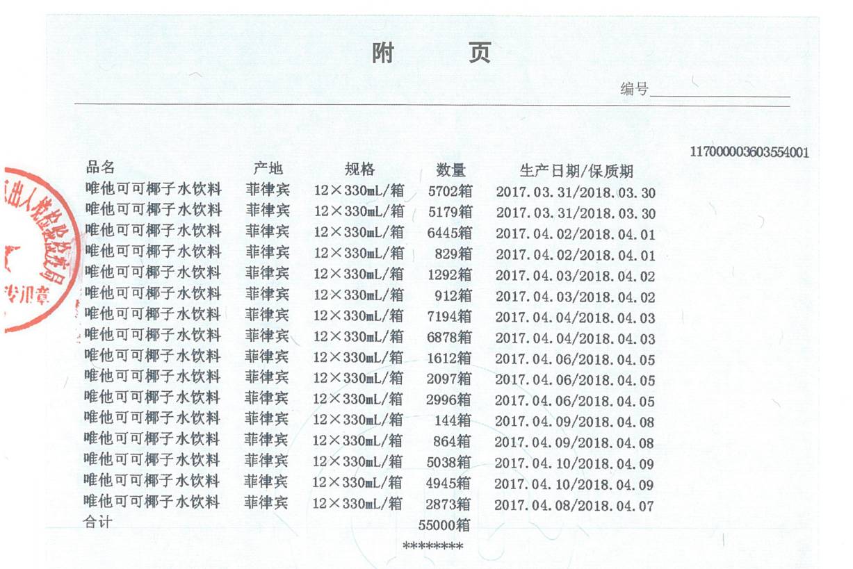 生产日期:2017年4月4日、4月10日、4月11日、4月12日、4月13日