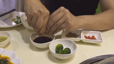 这份酱料也不是随随便便能买到的,得是大厨亲自用8种配料调制成的酱油,再挤上小金橘,然后加入沙姜、小米辣,才算完美的搭配。
