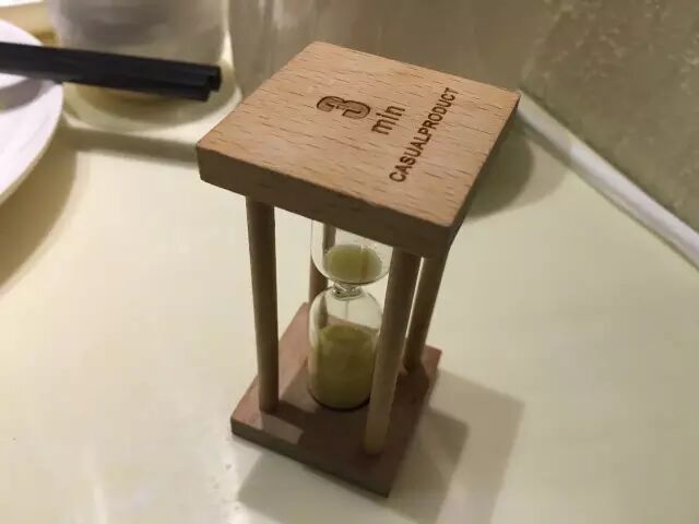 时间也不需要太久,盖上锅盖只要三分钟就足够了。为了防止吃货们只顾聊天而过了火候,店里还特别准备了一个小沙漏用来计时,很贴心。