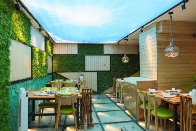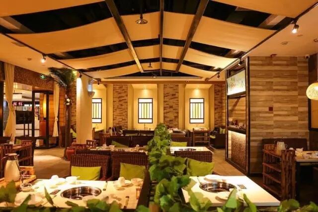整间餐厅自然是浓浓的热带风情,除了看上去富丽堂皇的大厅,老板还右侧专门营造一个特别的区域:头顶是“蓝天白云”,脚下是“沙滩贝壳”,还有绿意葱葱的植被......分分钟穿越的节奏!