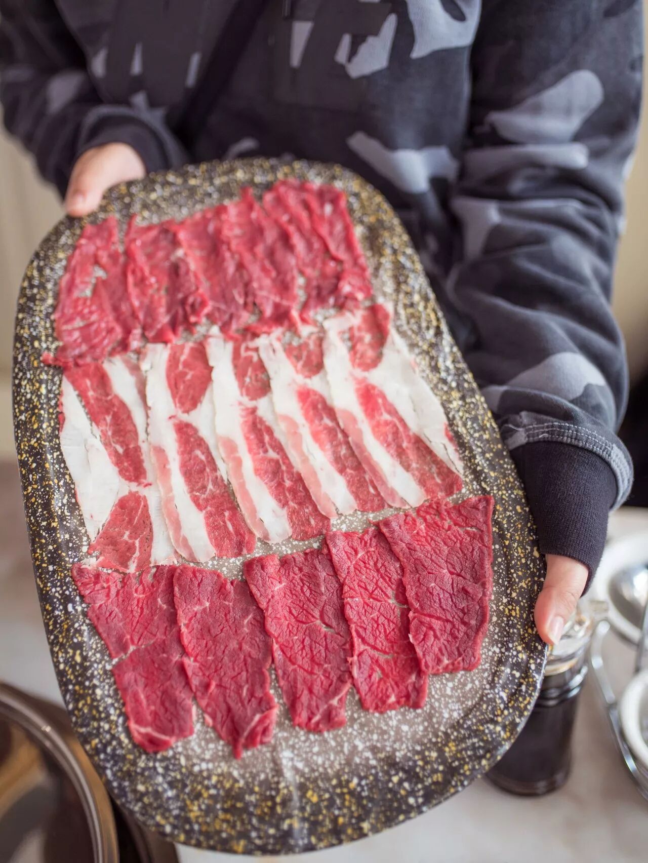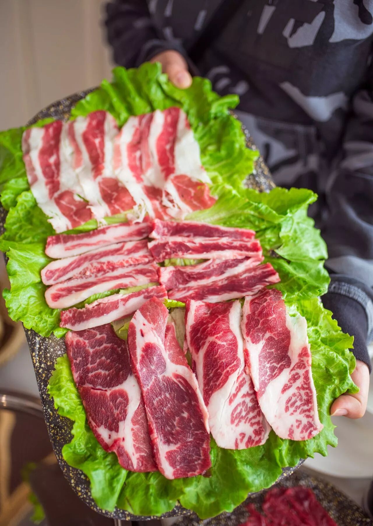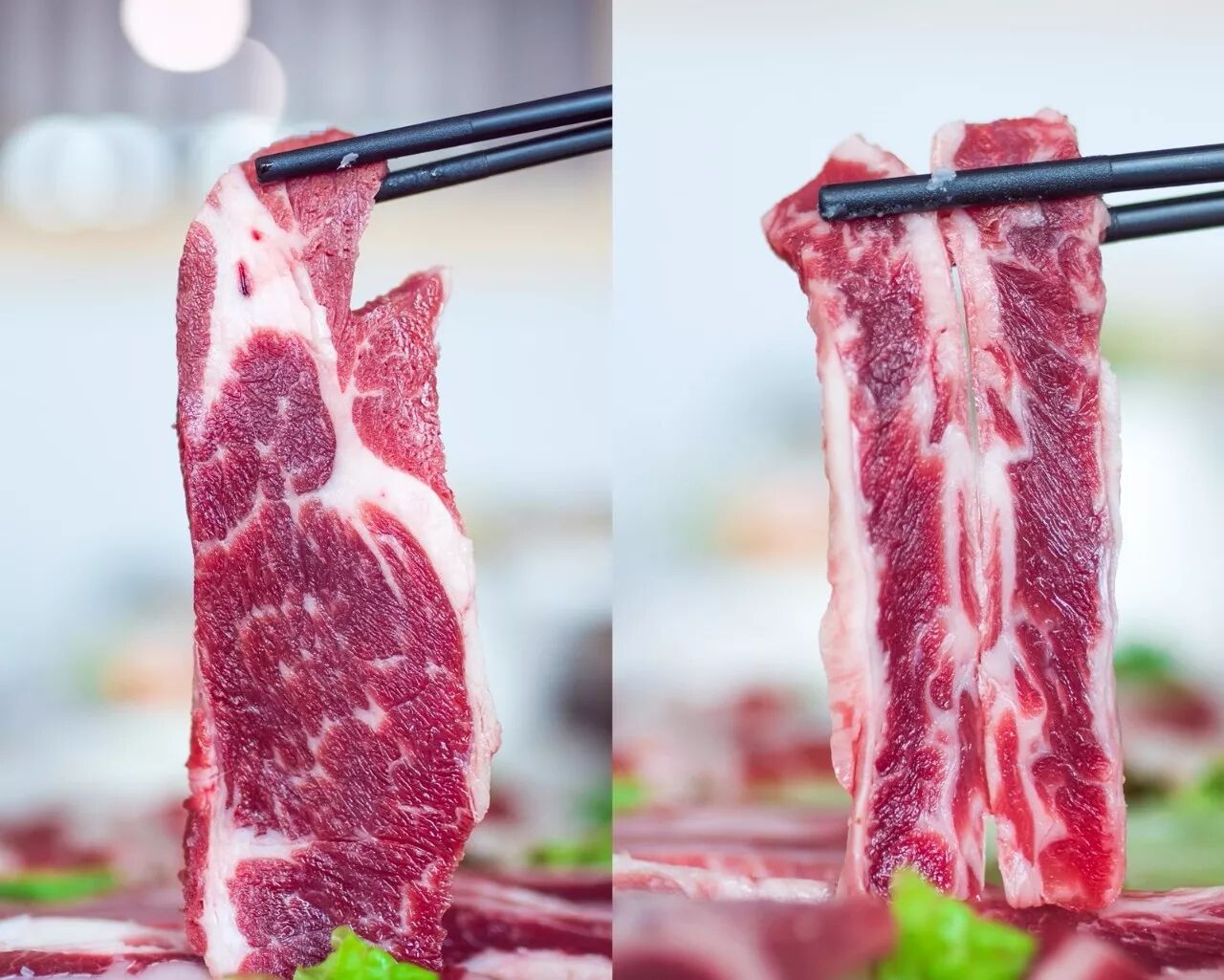 雪花、上脑、肥牛,每一款肉都新鲜无比,胶质满满地贴在盘子上,就算翻转盘子也不会轻易掉下来!