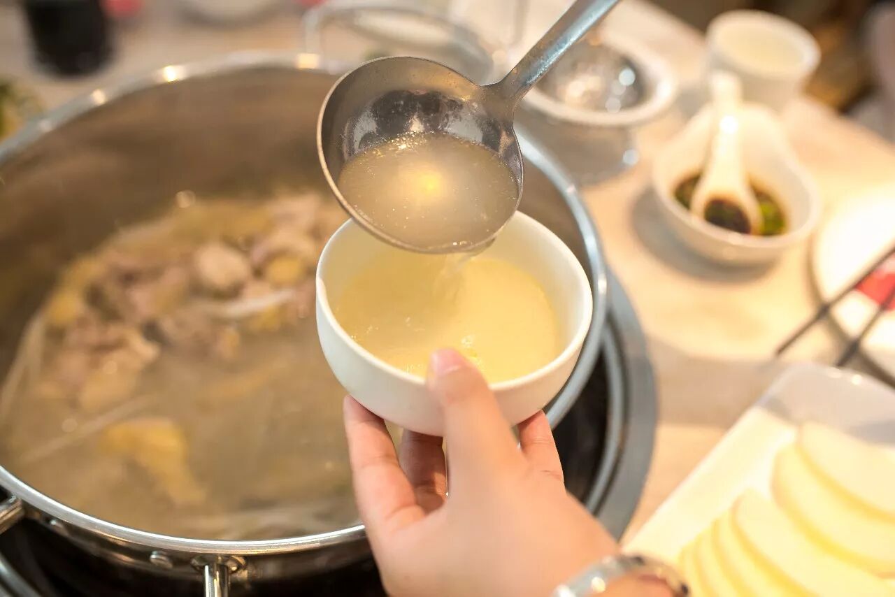 每个桌子上都配有一个沙漏,把鸡倒入锅中,倒计时5分钟,就可以开锅了!一揭盖,香气扑鼻而来!