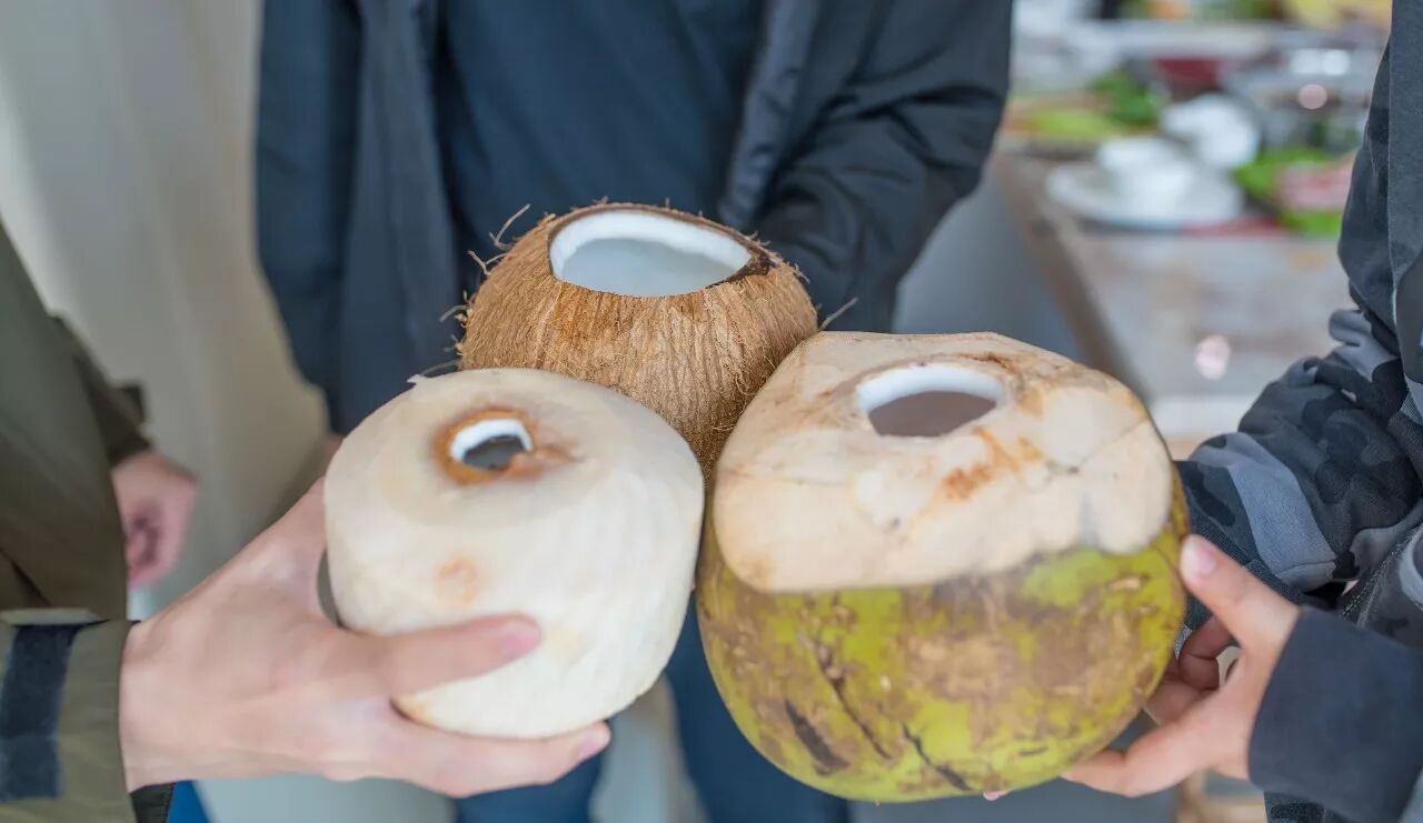 有三种椰子可以选择,左下角是最卖座的泰国进口椰,另外两款海南青椰、老椰的水也十分清甜!好品质真的要亲自试试才知道~