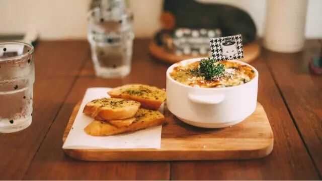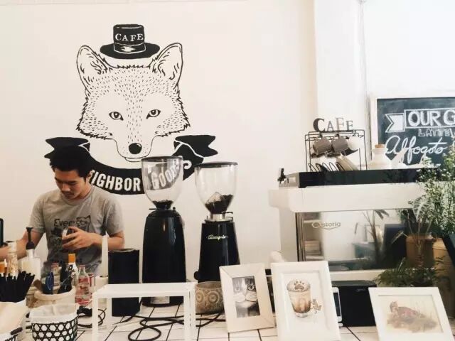 是的,这家咖啡馆以一只戴着礼帽的小狐狸作为自己的logo,与这可爱气质相衬的还有店内超级帅气的咖啡师,以及顶在松饼、蘑菇汤上的逗趣卡通形象,就连玻璃水杯都是格外有气质的波点图案。好看的插画,用心的小店,好吃的吐司,仿佛一切在这里都充满了童趣。