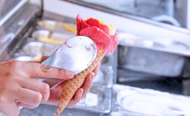 宁曼路有一家Gelato冰淇淋店,店员能信手捏出娇艳欲滴的“花朵”。椰子想说,如果你称它为"花店"也不是不可以。看似随意的动作,却能迅速将玫瑰状的冰淇淋举到你眼前,而且口感很棒,甜筒也很好吃。每个甜筒可以选择两种口味搭配~