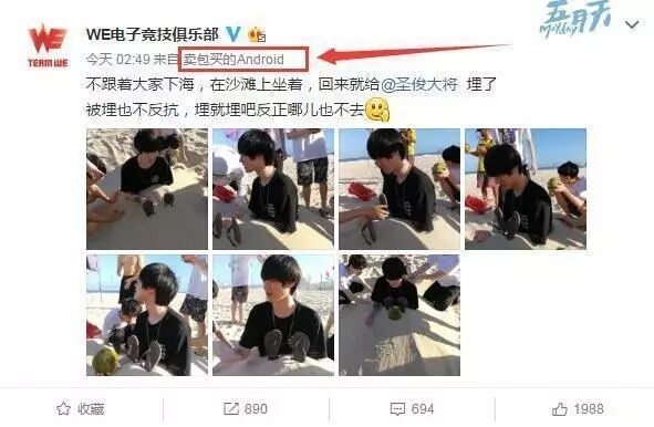 不得不说WE战胜SKT后的“卖包行动”还是非常成功的,连官博上都迫不及待的标明了“卖包买的Android”...